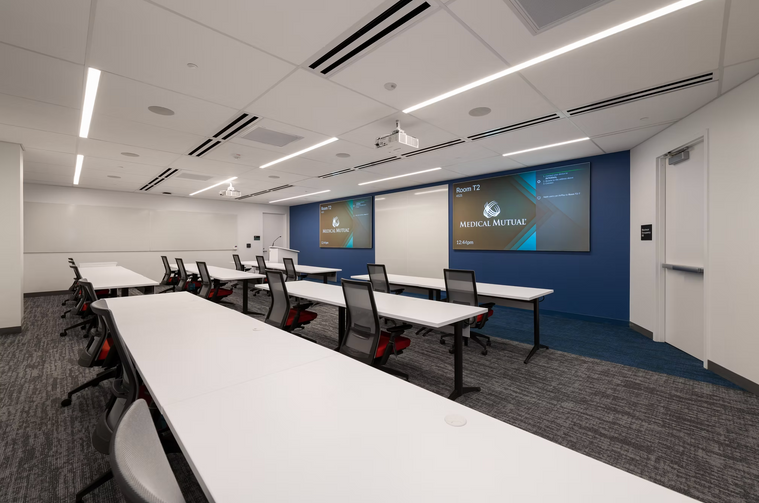 Medical Mutual Brooklyn Operations Center is a 350,000 SF renovation of a portion of the Former American Greetings headquarters in Brooklyn Ohio. Centralizing their operations, this facility provides 1,500 employees with ample training facilities, a full service kitchen, an outdoor patio, multiple break areas, a full service fitness center, and a health screening area with state of the art technology.